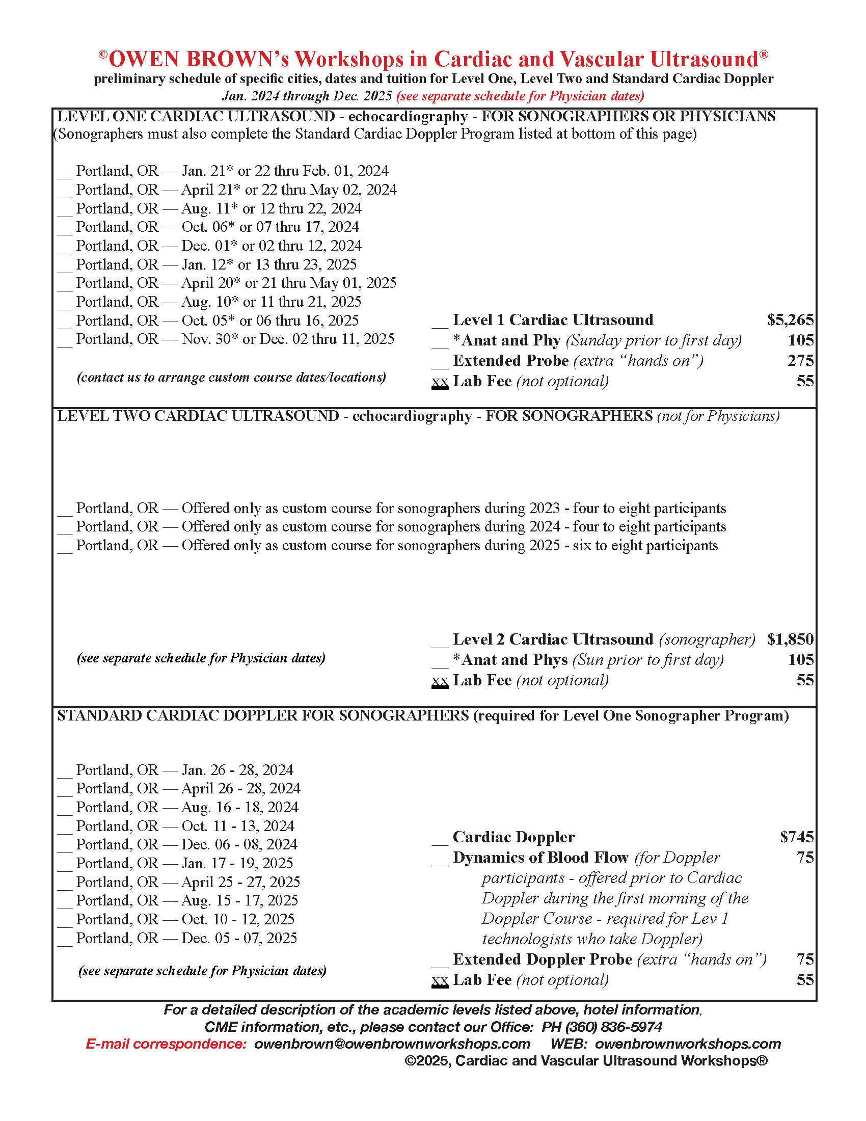©Owen Brown's Workshops in Cardiac and Vascular Ultrasound®